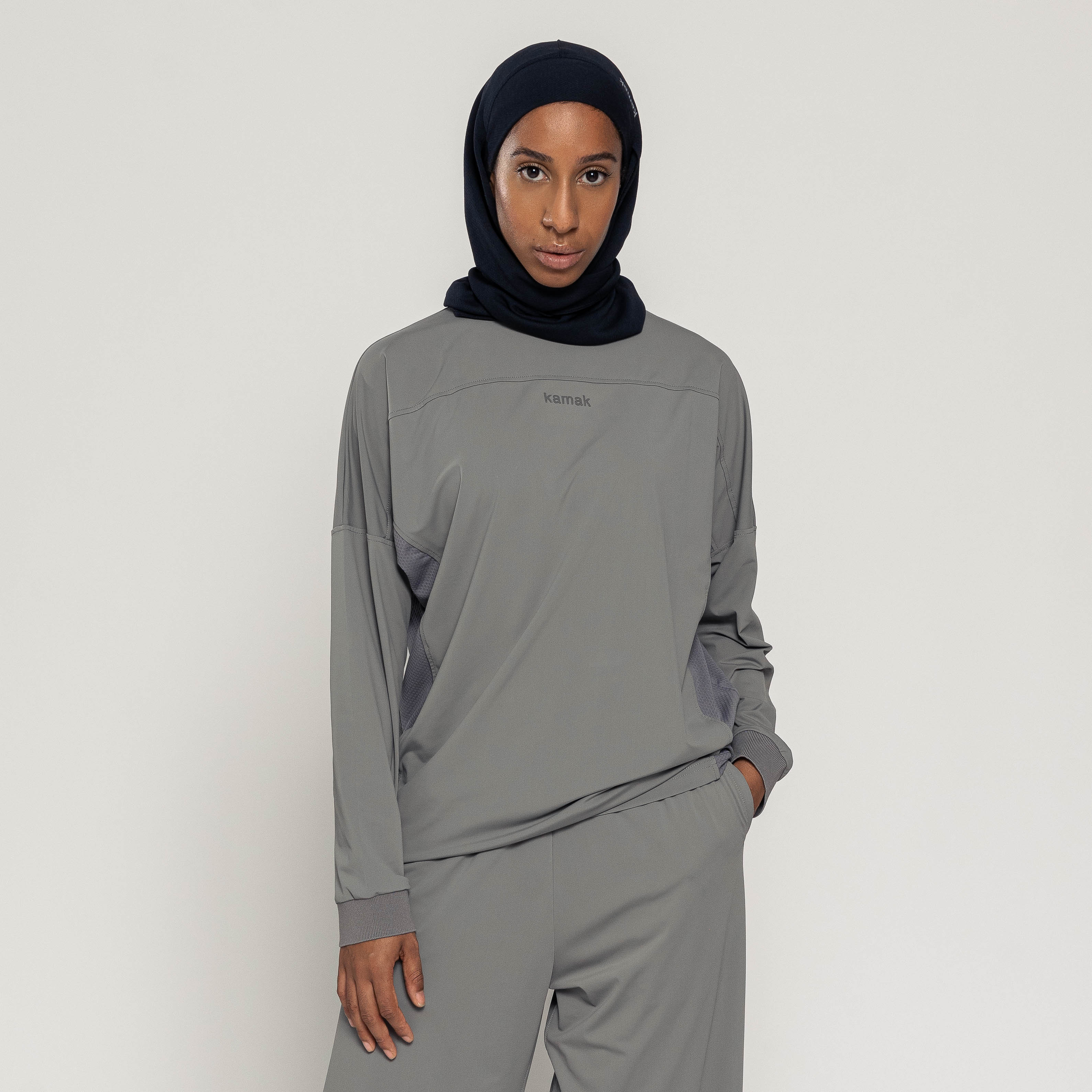 The best of modest sportswear: a long-sleeved T-shirt suitable for high-intensity training. Ultra-light and fluid, it dries quickly and lets the skin breathe. Made with a resistant textile, it will stand the test of time.