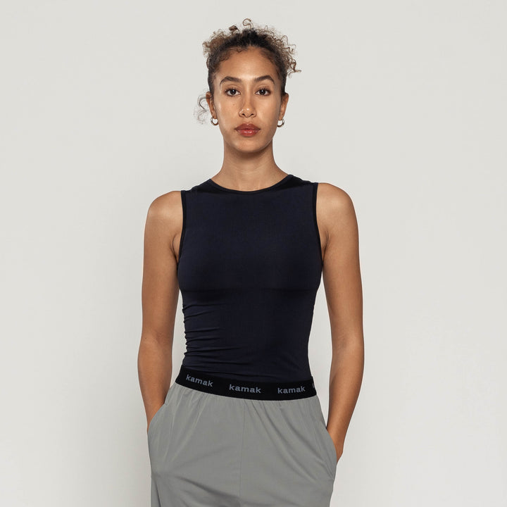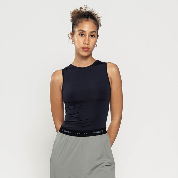 Ultra-light and elegant tank top. Smooths and shapes the silhouette, perfect for everyday activities and sports. Made with a resistant textile, it will stand the test of time; it keeps its color, shape and quality despite numerous washes.